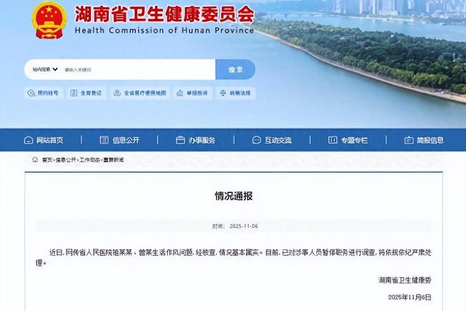 事件的转折点出现在2025年11月6日,湖南省卫健委发布官方通报,明确确认祖雄兵与曾琦的“生活作风问题情况基本属实”,两人已被暂停职务接受进一步调查,这一通报让此前的各类传言有了官方定论,也让舆论讨论进入更深层次。