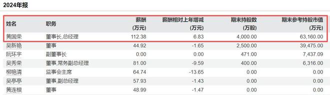 2024年年报显示,黄国荣年薪为112.38万元,吴新艳年薪为44.92万元。