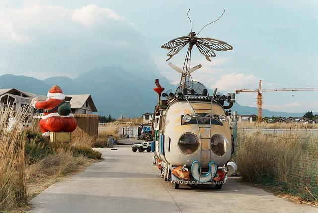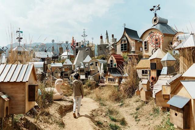 “荒野之国”由这些装置和诸多小房子、怪车等组成,多达五百余件,平时还承接了真人秀节目录制。