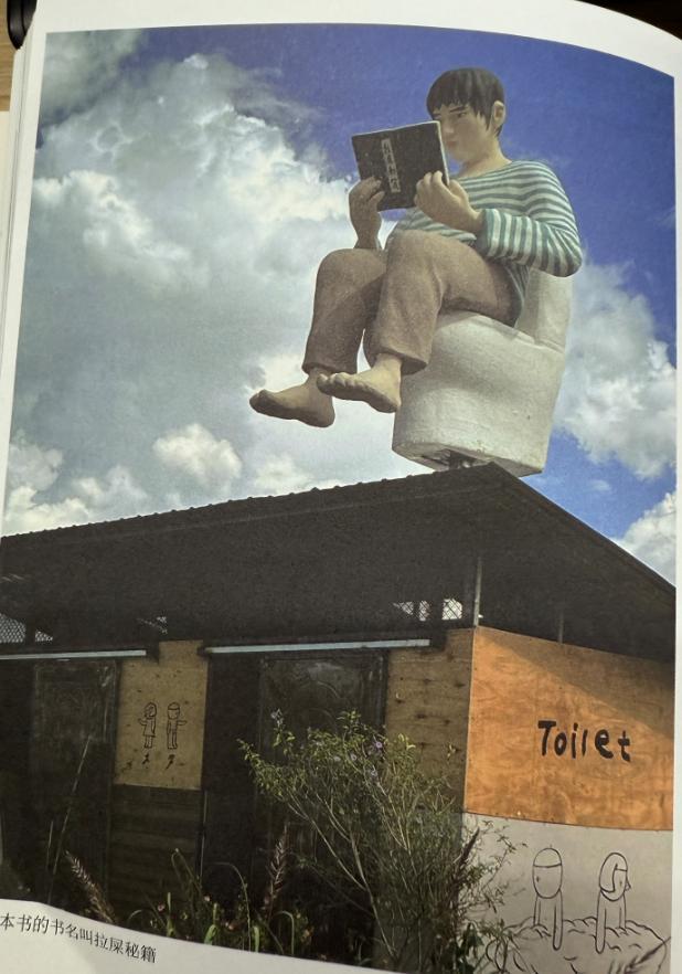 有意思的是,在“荒野之国”内,有一座“马桶”凌驾于屋顶之上,上方是一个正在阅读《拉屎秘籍》的“人”,寓意为不开心的事情、焦虑或者烦闷不要憋在心里,应想尽各种办法排泄出去。