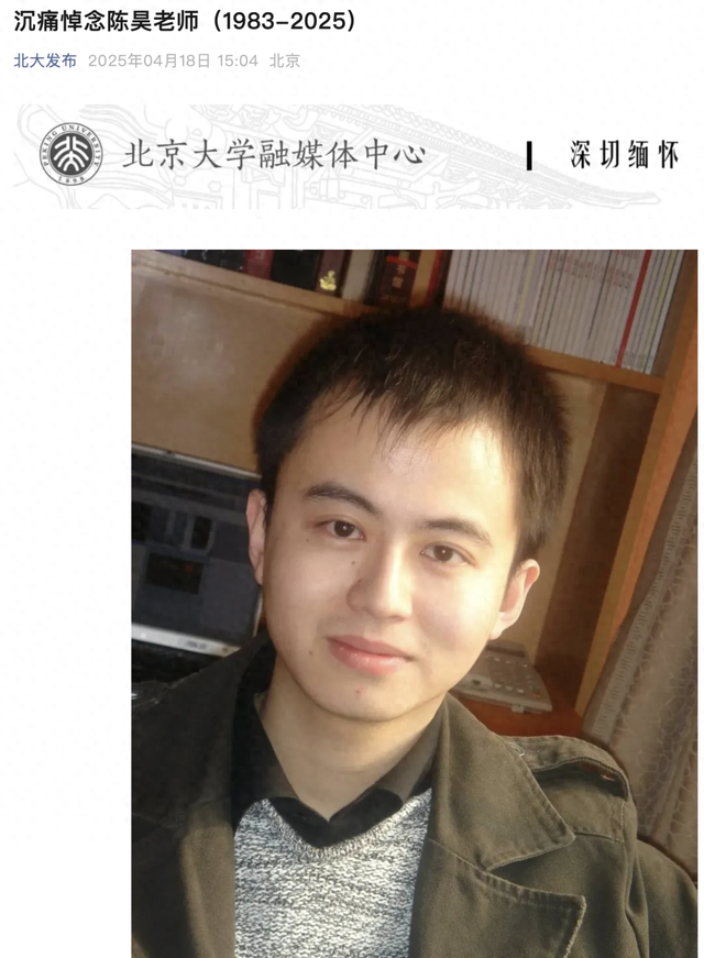 今天,“北大发布”微信公众号发文,沉痛悼念陈昊老师。