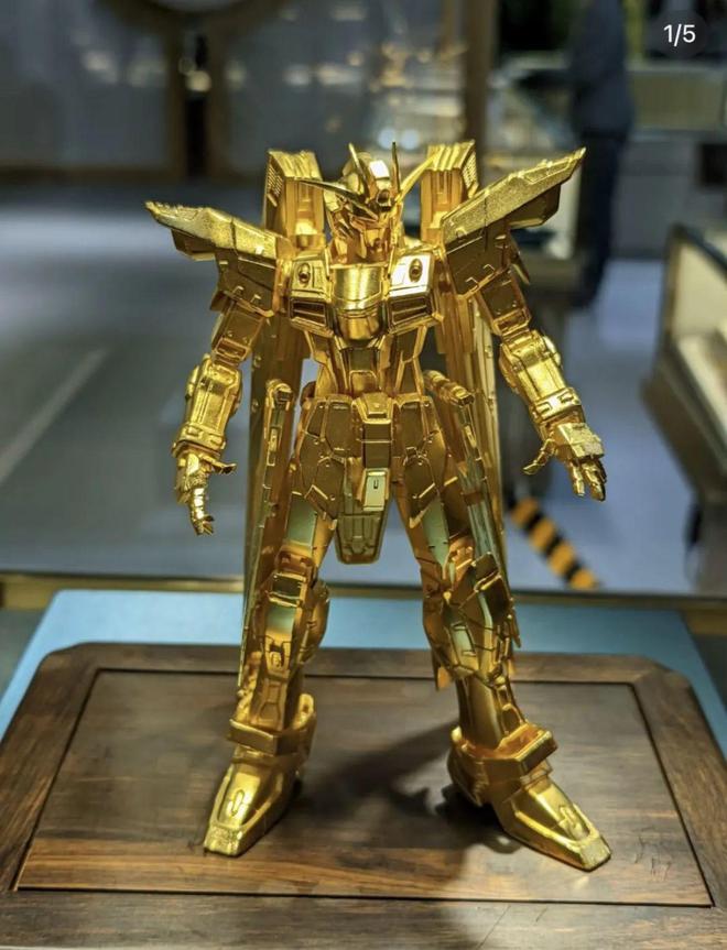 “黄金手办”不是市场独一份。去年7月,老凤祥曾推出高达SEED联名“黄金自由高达”系列,1000g黄金手办,全球限量10件,一时之间震惊四座。