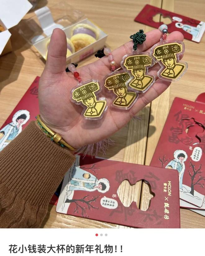 还有商家直接沿用IP衍生周边的产品思路,推新“黄金谷子”。比如曼卡龙《甄嬛传》联名,复刻了剧情中的“黄金小像”,既戳中了“甄学家们”的兴趣点,也迎合了玄学祈福寓意。天猫旗舰店销售超9000。