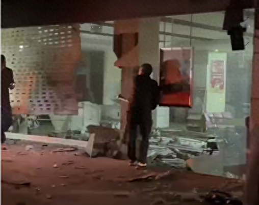 这位目击者向记者描述事发现场,“半挂车是推着小轿车进了银行,半挂车拐了个弯横过来就没进去,是小车冲进了银行大厅,当时是晚上也看不清楚车牌号。具体后续怎么处理,因为交警来之前我就走了。”