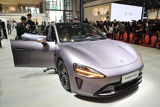 此外,小米展台展出了SU7和SU7 Ultra,每台展车的后门和尾门上均粘贴了小心夹手的提示。工作人员称,是因为人多为了防止意外。