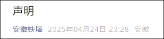 4月25日早上8点,安徽铁塔微信公众号再就此事发布公告: