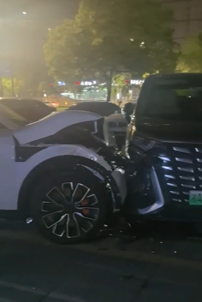另一段视频显示,一辆白色的极氪7X撞在一黑色商务车左前方,事故现场还有两辆疑被撞开的车辆。现场一片狼藉,未见人员受伤。