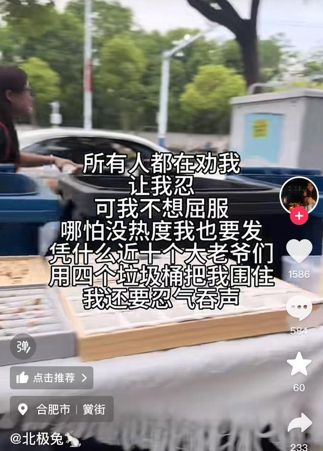 4月27日,一女子发视频称,她在安徽合肥市黉街摆摊卖小饰品,当天上午来摆摊时,发现摊位被4个桶占据。想问问情况,却被一“便装男”蛮横回应,并把桶往客人身上推。之后该男子指挥其他穿统一工装人员用4个桶将她的摊位围住,使其无法正常营业。