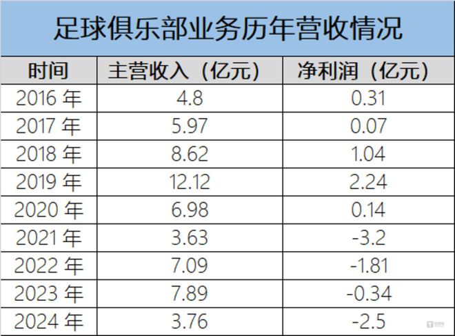 足球俱乐部、游戏业务拖累业绩