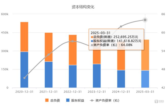 2024年公司的资产负债率进一步增加来到了61.94%,这也是公司上市以来的新高。2025年一季度,资产负债率更是进一步推高,达到了64.08%。其中值得注意的是,公司2025年一季度公司期末高达11.2亿元的短期借款。