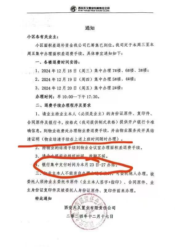 4月29日,华商报大风新闻采访渭南新工物业,工作人员称,当初交清物业费退费的通知是开发商西安天久置业张贴的,开发商与物业公司是两家独立公司,没有隶属关系,房屋面积缩水退费的事项还要找开发商才行。
