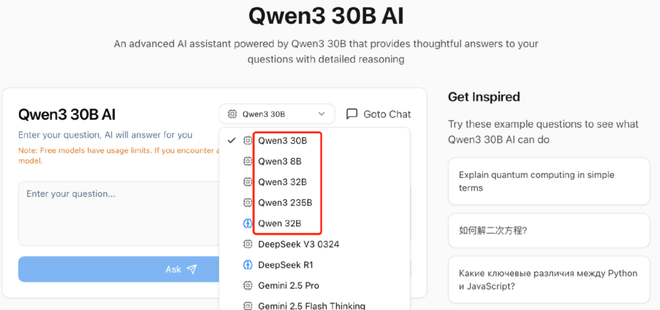 「电厂」注意到,Qwen 3发布仅10小时,已经有开发者发布了套壳Qwen 3系列模型的ChatBot类产品。