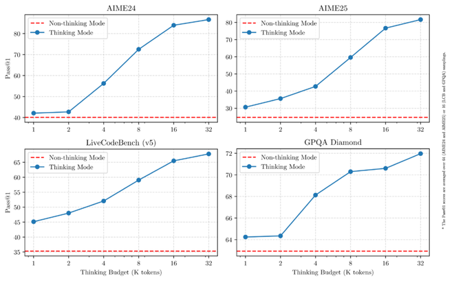 在思考模式下,模型会逐步推理,经过深思熟虑后给出最终答案。这种方法适合需要深入思考的复杂问题;在非思考模式中,模型会提供快速、近乎即时的响应,适用于对速度要求高于深度的简单问题。