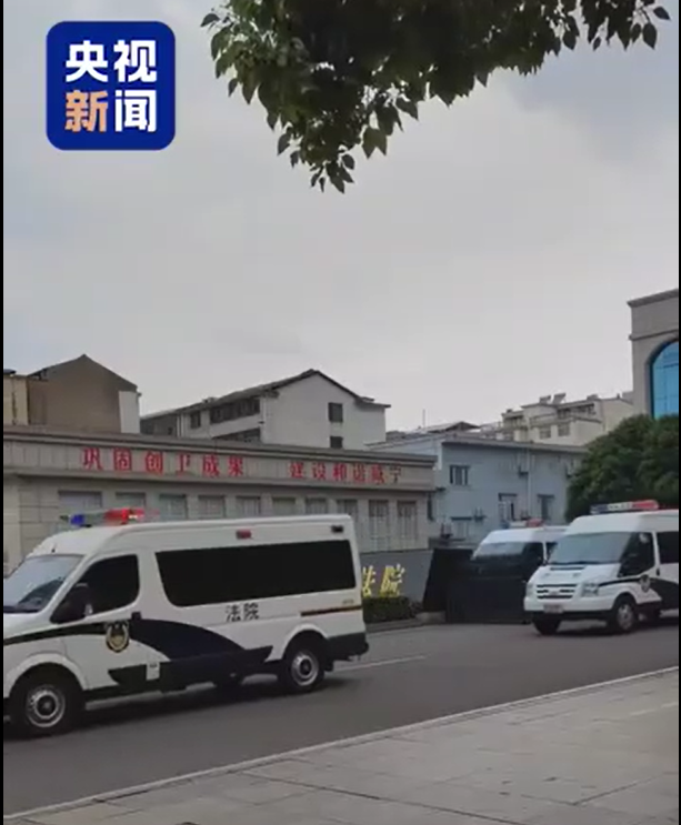载着李铁的警车进入法院