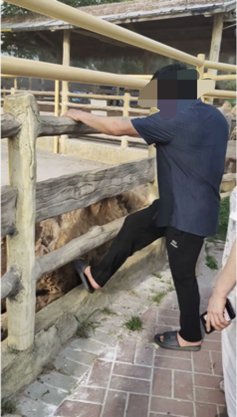 网友反映游客脚踹卧倒骆驼,园区回应:已贴提醒牌,会加强巡查