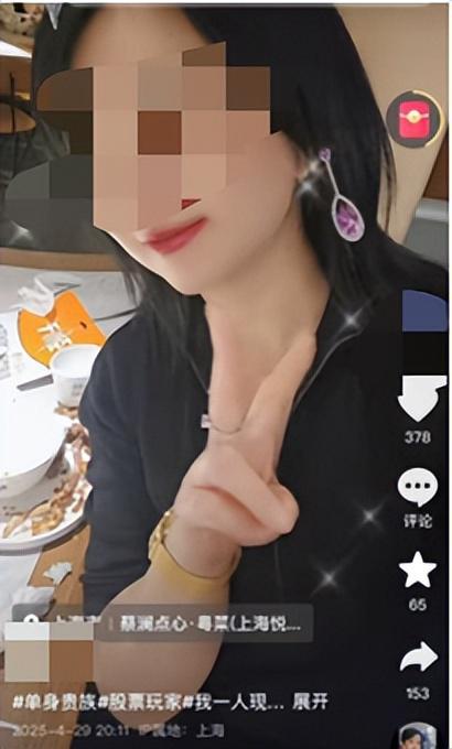 网友曝其抖音账号显示,该女子是上海人,今年31岁,有2.4万粉丝。其在抖音上自称“单身贵族,上海股票女玩家”。