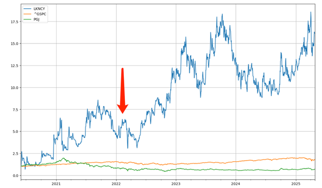 上图为瑞幸,标普500以及金龙指数基金(纳斯达克上市中概企业为主)在过去几年的股价波动情况(初始值设为“1”)。郭谨一正式就任之前,瑞幸股价已经跌入谷底(一度跌破了1美元的股票面值),其后股价便一路高走,迄今上涨超十余倍,全面跑赢大盘标普500和中概企业。