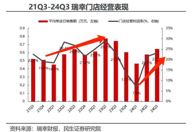 但一年多以后,上述担心便不复存在,2024年Q2之后瑞幸门店经营利润率开始回升,已经接近2022年前后的水平,2025年Q1同店销售同比增长8%,实现了“量价齐飞”的局面。