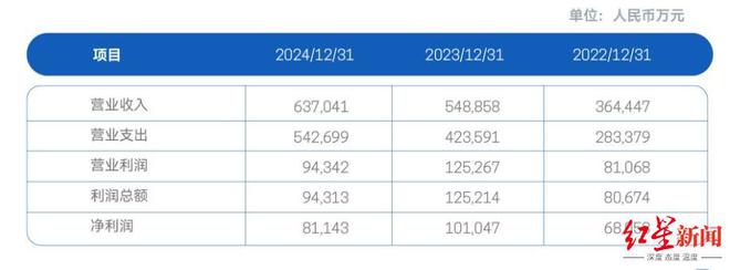 财务数据显示,2021年、2022年、2023年、2024年,新网银行分别实现营业收入26.41亿元、36.44亿元、54.89亿元、63.70亿元,分别同比增长了12.08%、37.98%、50.60%、16.08%;实现净利润9.18亿元、6.81亿元、10.10亿元、8.11亿元,分别同比增长29.97%、-25.84%、48.48%、-19.70%。