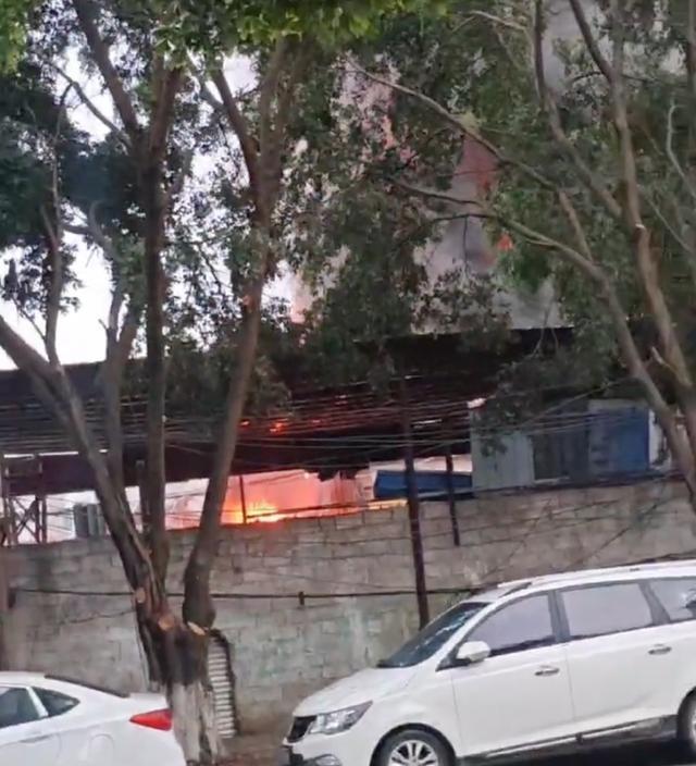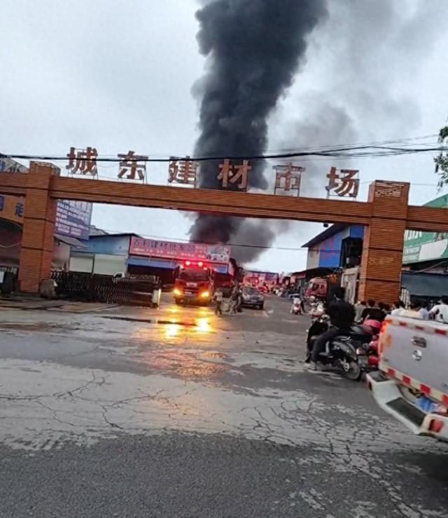 视频显示,建材市场内升起大量浓烟,院内部分房屋火势猛烈,已有消防人员赶赴现场灭火扑救。