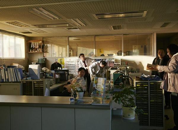 正因为身处这样“不宽容的世界”,故事里栗田科学研究所的出现才犹如乌托邦般的存在。这个除了美纱和山添君以外仅有五名老年人的小型公司在形象上就跟办公楼里的职场不同,规整的格子间、狭长无采光的走廊、功能划分明显的区域在这里都不存在,取而代之的两层高的独栋建筑里良好的采光和偏生活化的内景布置,这些环境特征也是它人文关怀的体现:这里没有工作压力,没有区别对待,所有人尽可以按照自己的方式工作。也因此,它接纳接连被其他公司拒绝的美纱,允许山添君抱着暂时在此落脚的心态加入进来。在不排斥的同时,它也不过度关注,给予美纱和山添君足够的个人空间去练习跟自身的问题共处,只在必要的时候给予援助。