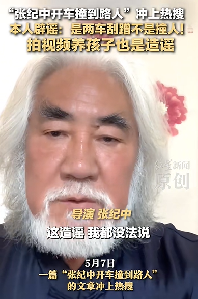 5月7日,一篇“张纪中开车撞到路人”的文章冲上热搜。该文章称,有网友爆料她母亲开车时被导演张纪中撞到,交警判定张纪中全责。文章还称,张纪中跟她母亲聊天拉家常,说他有四个孩子,要拍短视频养孩子。