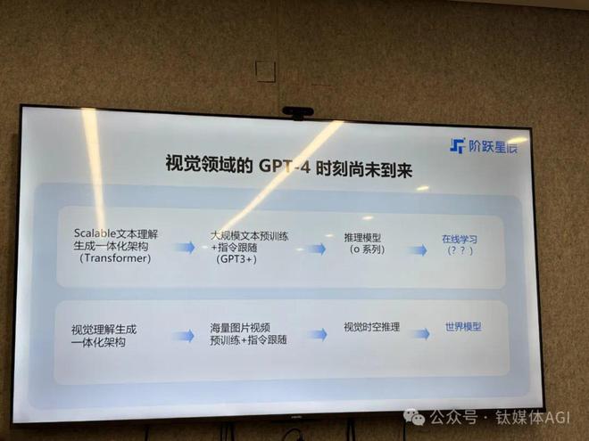 “为什么大家觉得AGI路线越来越清晰,我确实有同样的感觉,文本这条路已经看到了这里(当前)。虽然视觉最根本的问题当下没有解决,但一旦突破以后,今后的道路会更加顺畅。”姜大昕称。