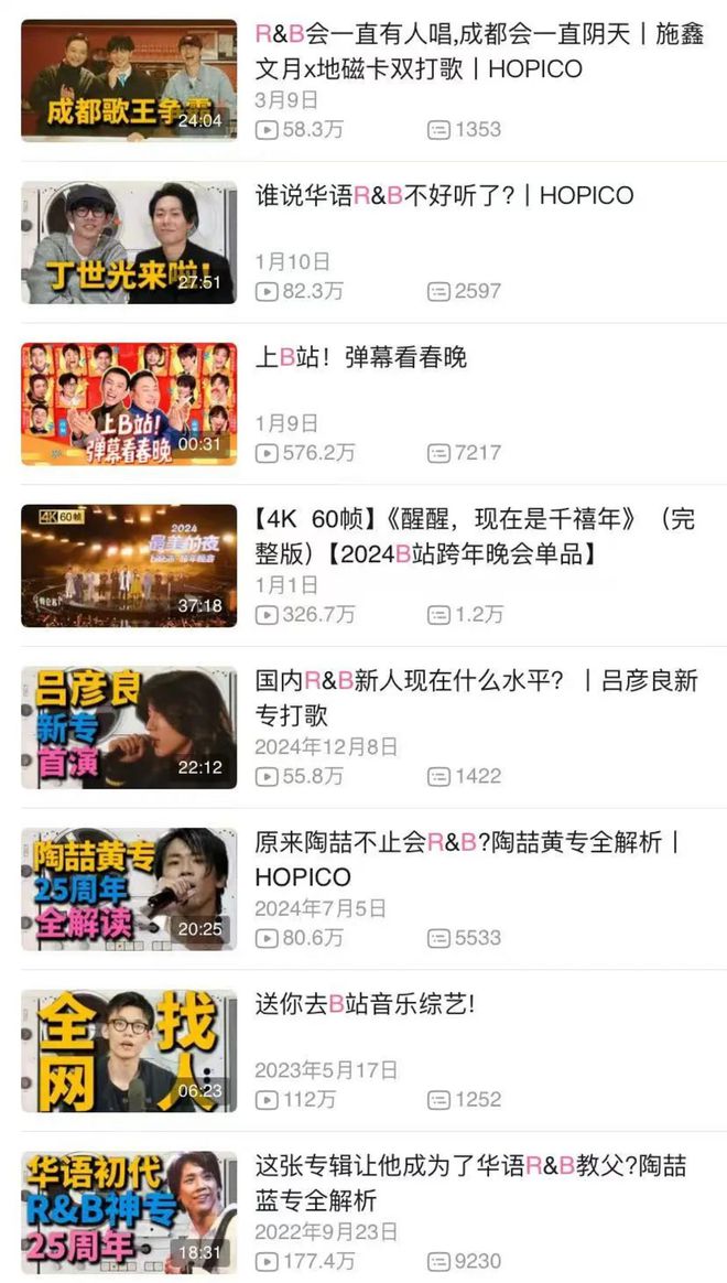 2022年,HOPICO逐渐成为B站音乐区的头部UP主,也是推动R&B在B站复兴的核心力量。陶喆、方大同作为HOPICO最喜欢的音乐人,在视频中被多次提及。后来他为两人做的专访视频更是成为全站热门内容。「打歌」机制则让吕彦良等年轻的R&B音乐人,被更多人所看到。