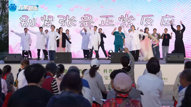 5月9日晚,在新乡市某大型商场门口,新医三附院的医务人员登上舞台,把专业的医学知识与相声、情景剧等文艺形式巧妙结合,从居民常见的医疗知识切入,用幽默段子、有奖问答的方式,让健康知识变得看得懂、接得住、用得上。