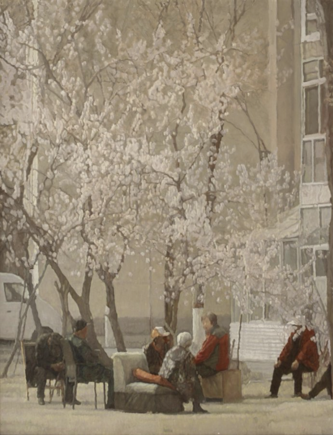 《杏花开》付世文,布面油画,170×150cm,2019年(宁夏美术馆藏)
