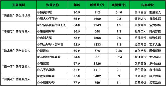 抖音短视频中银发网红形象分类及定位长青研究社制作