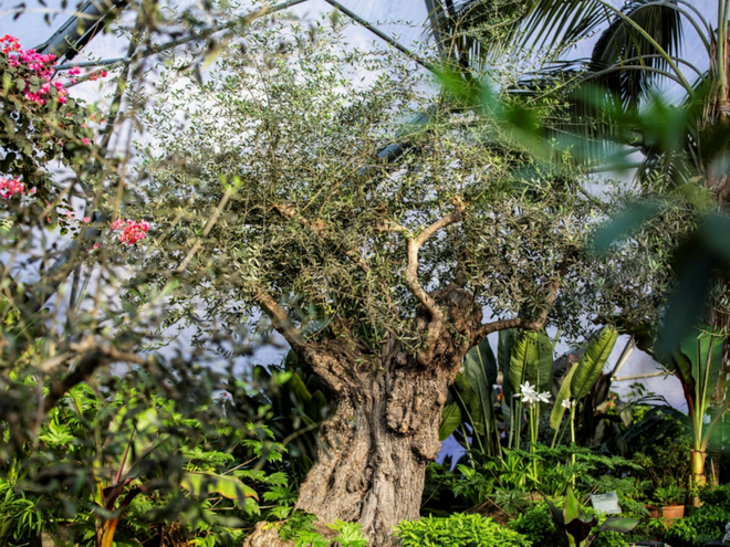 盘根错节的根系紧抓着贫瘠的浅层土壤,一棵古老橄榄树布满瘤节的树干顽强向上,托起浓密如云的银绿色树冠。这令人惊叹的生命奇迹,此刻正被笼罩在一个充满未来感的短程线穹顶(geodesic dome)之下——在英国康沃尔郡的伊甸园工程保护区,植物考古学家丹·瑞安正仰望着这位"时空旅者":"它大约1800岁了,当它还是幼苗时,人类文明正经历着怎样的激荡?"