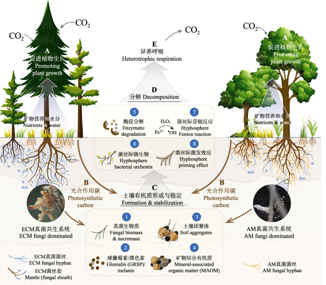 ▷地下菌根网络。图源:植物生态学报