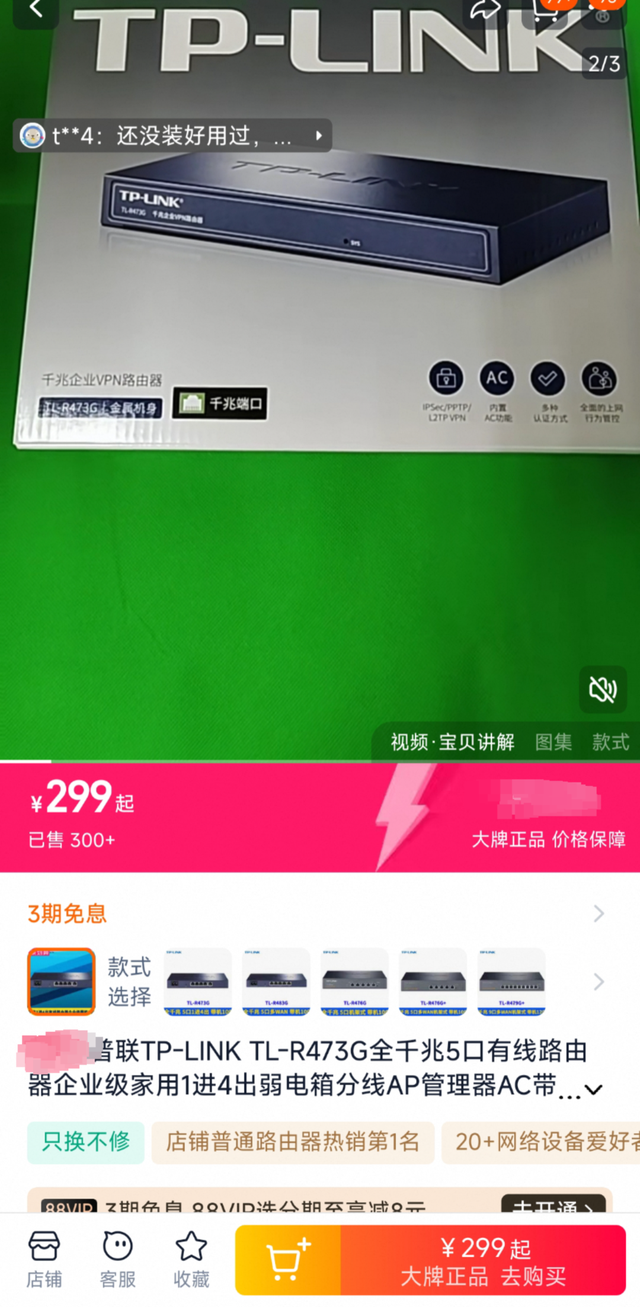 在电商平台进行查询,“普联TL-R473G”只是一款普通路由器。在某电商平台普联官方旗舰店询价,该款路由器售价仅为299元。