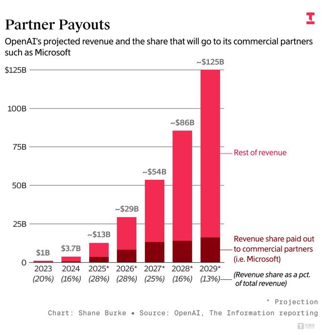 然而,OpenAI和微软之间的关系非常微妙,潜在矛盾日益加剧。有消息称,OpenAI计划大幅削减微软的收入分成。根据现有协议,OpenAI同意2030年前与微软分享其1740亿美元的20%收入,然而最近几周,OpenAI表示,到2030年,它将仅与微软等商业合作伙伴分享10%的收入。