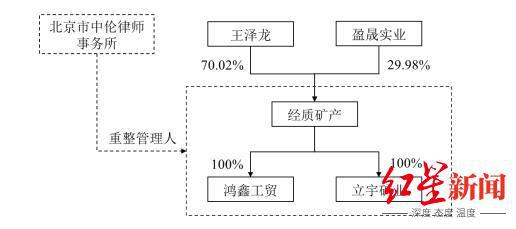 目前,经质矿产由王泽龙(中核钛白实控人)、盈晟实业分别持股70.02%、29.98%。公司及其两家全资子公司鸿鑫工贸、立宇矿业处于实质合并重整程序中。