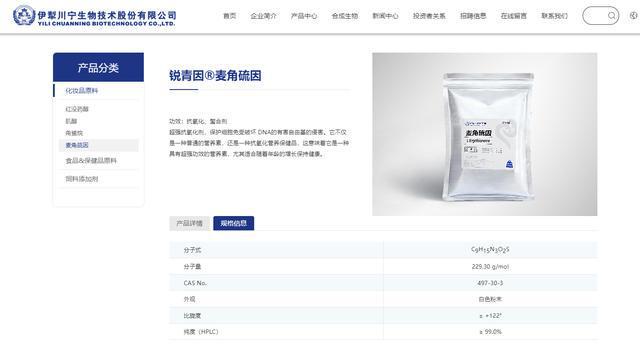 科伦药业子公司川宁生物官网介绍,麦角硫因是一种超强抗氧化剂,保护细胞免受破坏DNA的有害自由基的侵害。它不仅是一种普通的营养素,还是一种抗氧化营养保健品,这意味着它是一种具有超强功效的营养素,尤其适合随着年龄的增长保持健康。