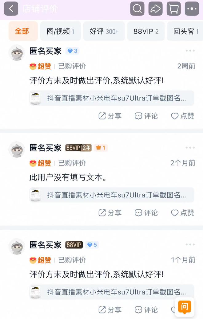 有店铺评价显示,2个月前就有用户下单小米SU7 Ultra的订单截图。