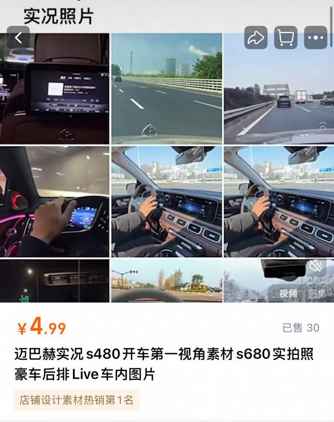 不止小米汽车订单截图,红星资本局注意到,在电商平台上,还有商家售卖提车仪式照片,豪华车方向盘照片,甚至还有车内第一视角素材等。有迈巴赫开车第一视角照片卖4.99元。