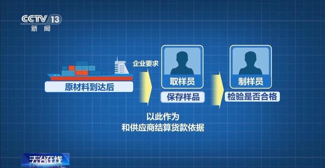 办案民警了解到,取样和制样就是企业设立的两个质检岗位,一般3到4人为一组。在原材料运达码头卸货时,一组取样员会利用设备,在传送带上抽取规定重量的原材料,之后再交由一组制样员对留好的样品进行质量检测。