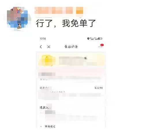 随后,有网友晒外卖超时后系统自动退款的页面截图,表示已收到全额退款。