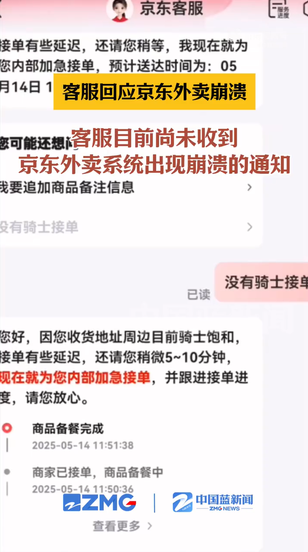 对此,京东客服表示,骑手接单在午间时段有可能出现人力不足的情况,有时候会出现长时间无人接单的情况,是正常的,具体配送与用户所在地区相关,客服目前尚未收到京东外卖系统出现崩溃的通知。