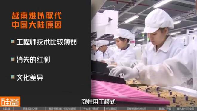 1.越南工程师的技术还较为薄弱。现在越南都是中国的工程师、设备和工厂直接过去,相当于越南就是中国的一个省的“外溢”。干活的都是同一批人,而本地员工还只能做一些执行类和操作类的工作,短期内无法替代技术层面的工作。