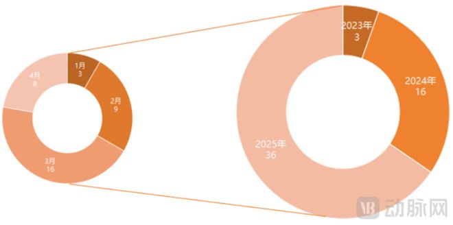 医院垂直模型开发时间分布(单位:个;截至2025年4月30日)