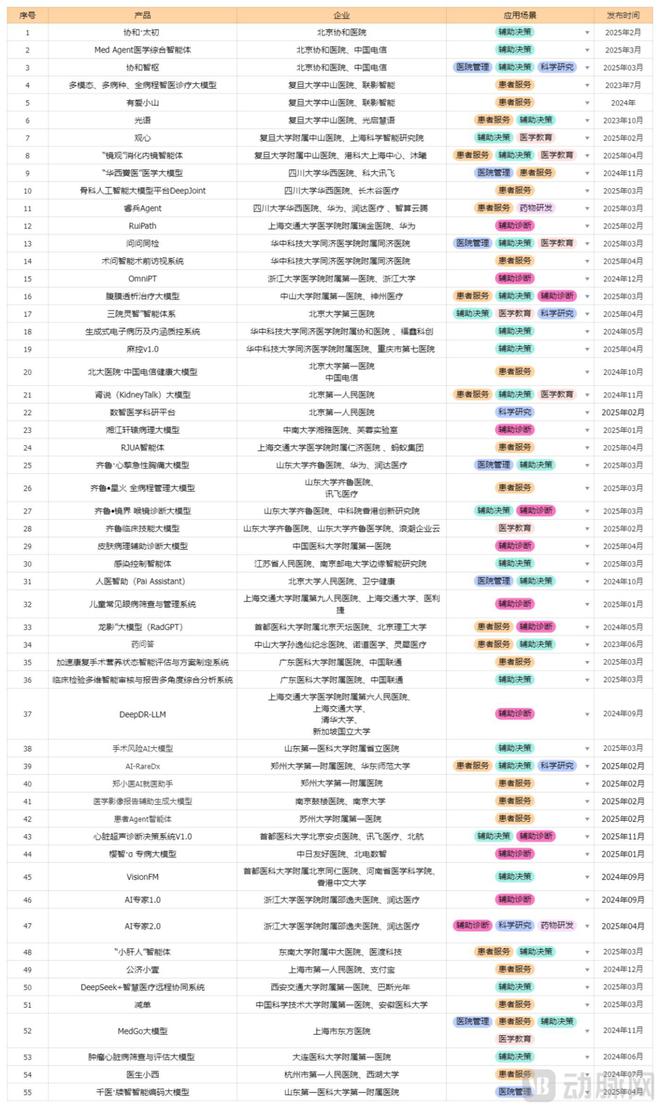 在这之中,有38家医院在通用模型的基础上进一步展开研发,打造出55个符合自身需求的垂直医疗模型。
