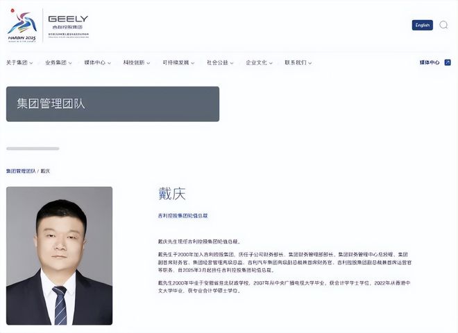 “80后”高管、原吉利控股集团高级副总裁兼首席运营官戴庆已于今年3月29日被任命为吉利控股集团首位轮值总裁,向吉利控股集团CEO安聪慧汇报工作。