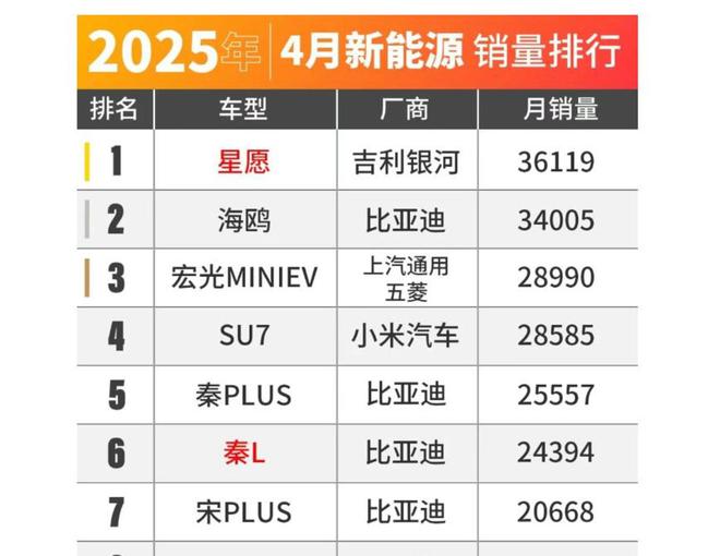 从一季度财报数据来看,吉利汽车的单季交付量突破新高,达到了70.38万辆,同比增长48%,尤其是银河品牌销量同比大增了214%;而刚刚过去的四月份,吉利银河星愿卖了36119辆,以近2000辆的微弱优势反超了比亚迪海鸥。