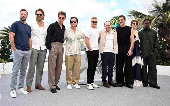 当地时间2025年5月17日,法国戛纳,第78届戛纳电影节,《爱丁顿》导演阿里·艾斯特(右四)与一众主创合影。视觉中国 图