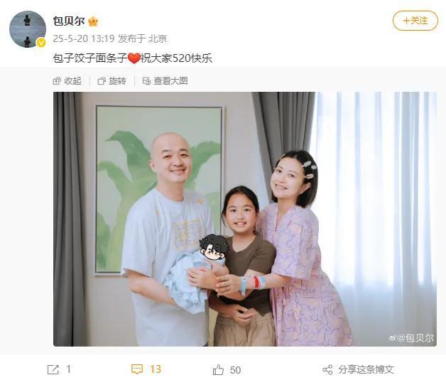包贝尔官宣:“谢谢我的老婆包文婧包子,谢谢女儿包可爱饺子,谢谢我老婆肚子里的老二面条子。”