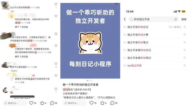 在小红书“独立开发听劝日记”的相关话题下,已有超过1万条“听劝式开发”的相关讨论。